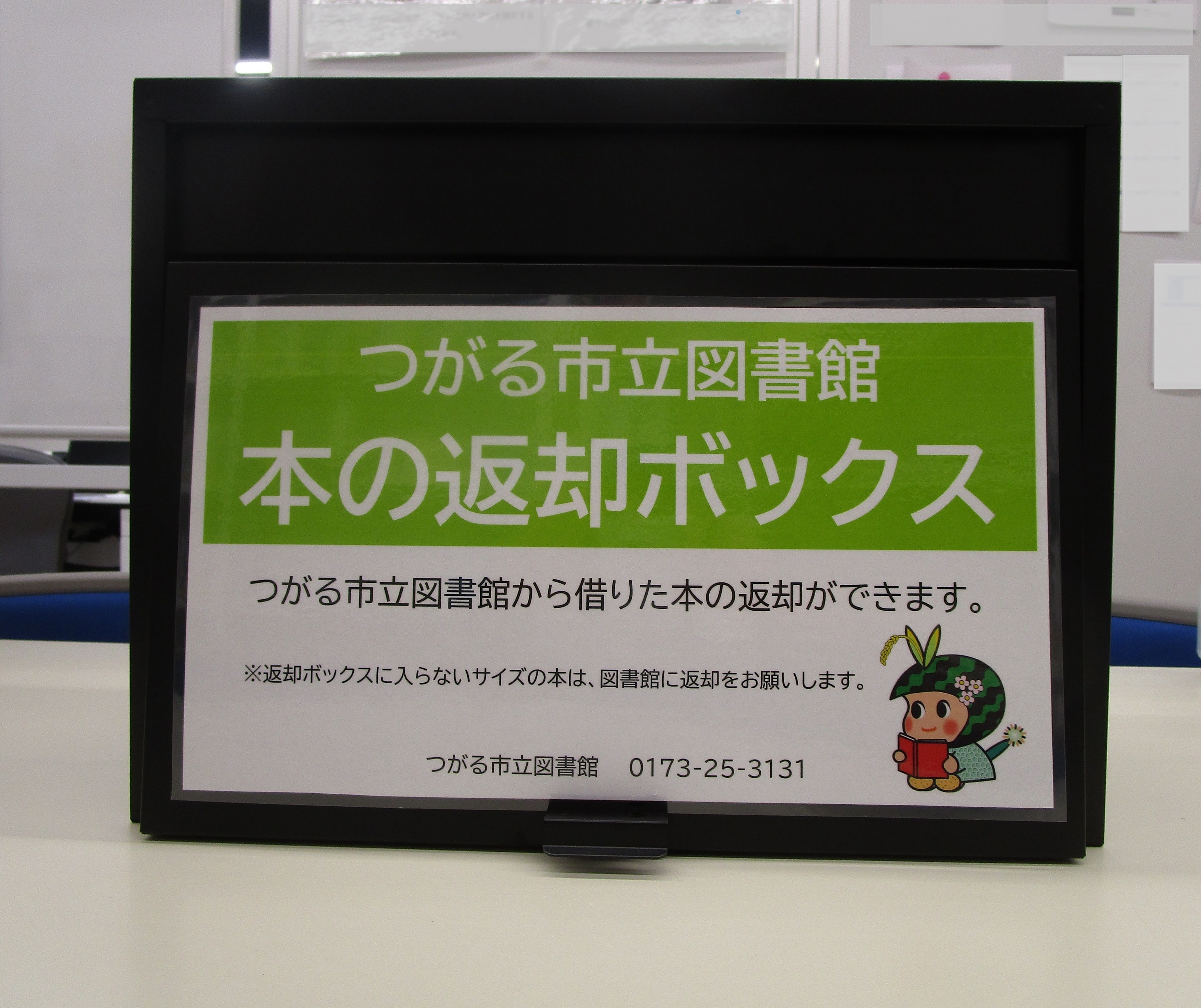 車力まつりの会場となったフラットの中には、つがる市立図書館の返却BOXがあります。