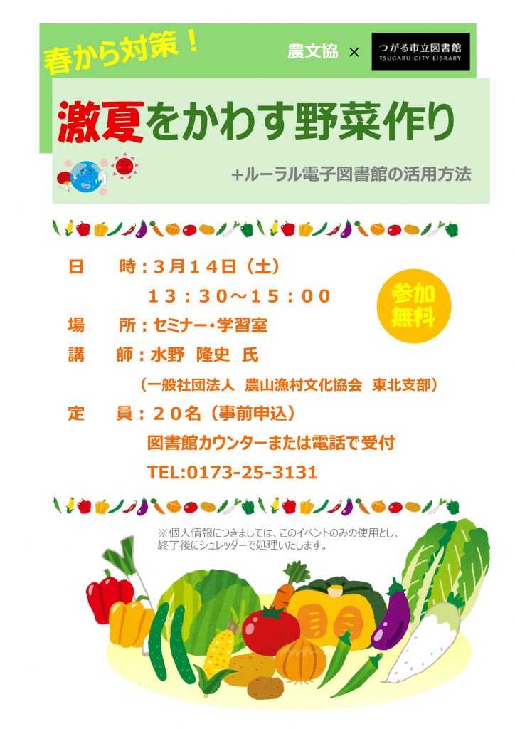 場 所:つがる市立図書館 セミナー・学習室
